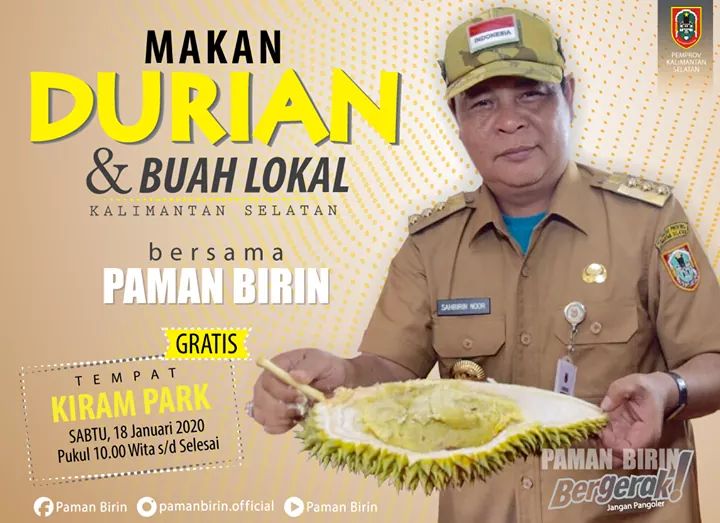 Menurut Paman Birin, makan durian gratis ini sebenarnya hanyalah puncak dari acara “Kontes Durian & Buah Eksotik Lokal” yang digelar Dinas Pertanian Tanaman Pangan dan Hortikultura Provinsi Kalsel. Pesertanya dari 13 kabupaten kota se Kalsel, yang mana ini merupakan event rutin yang digelar tiap tahun, dimulai sejak tahun 2017. “Tujuannya adalah melestarikan buah lokal yang memang memiliki keunikan tersendiri,” tambah Paman Birin.