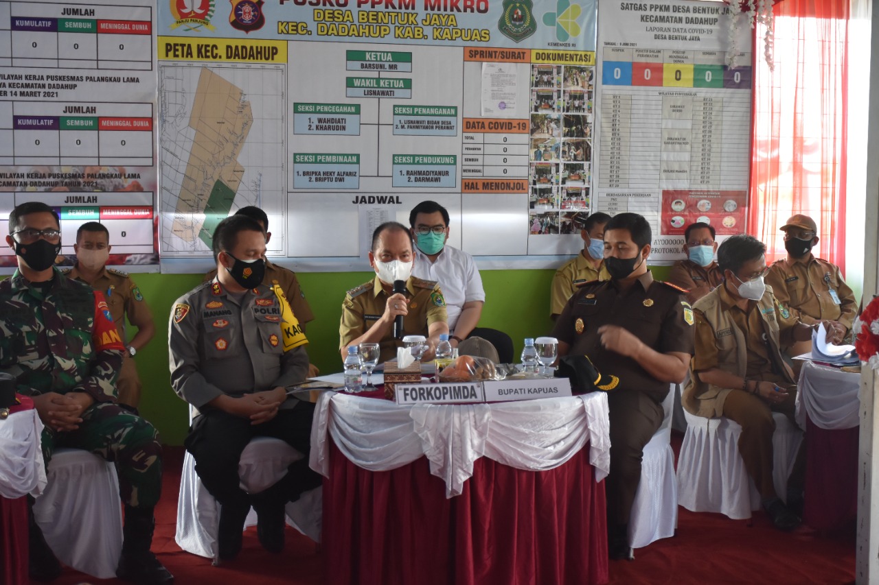 KANALKALIMANTAN. COM, KUALA KAPUAS – Bupati Kapuas Ir Ben Brahim S Bahat MM MT mengikuti video conference kunjungan kerja Wakapolri Komjen Pol Gatot Eddy Pramono di Provinsi Kalimantan Tengah guna melihat pos PPKM dan food estate di Desa Bentuk Jaya A5, Kecamatan Dadahup, Senin (14/6/2021).