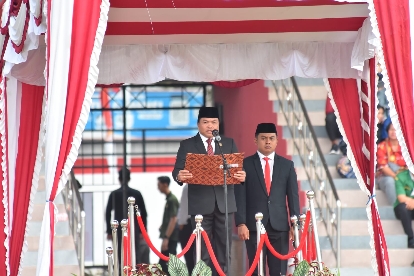 Dalam suasana khidmat dan penuh semangat kebangsaan, Wakil Ketua II DPRD Kapuas, Berinto membacakan naskah UUD 1945 dengan lantang, mengingatkan kembali pada semangat perjuangan para pahlawan dalam merebut dan mempertahankan kemerdekaan.