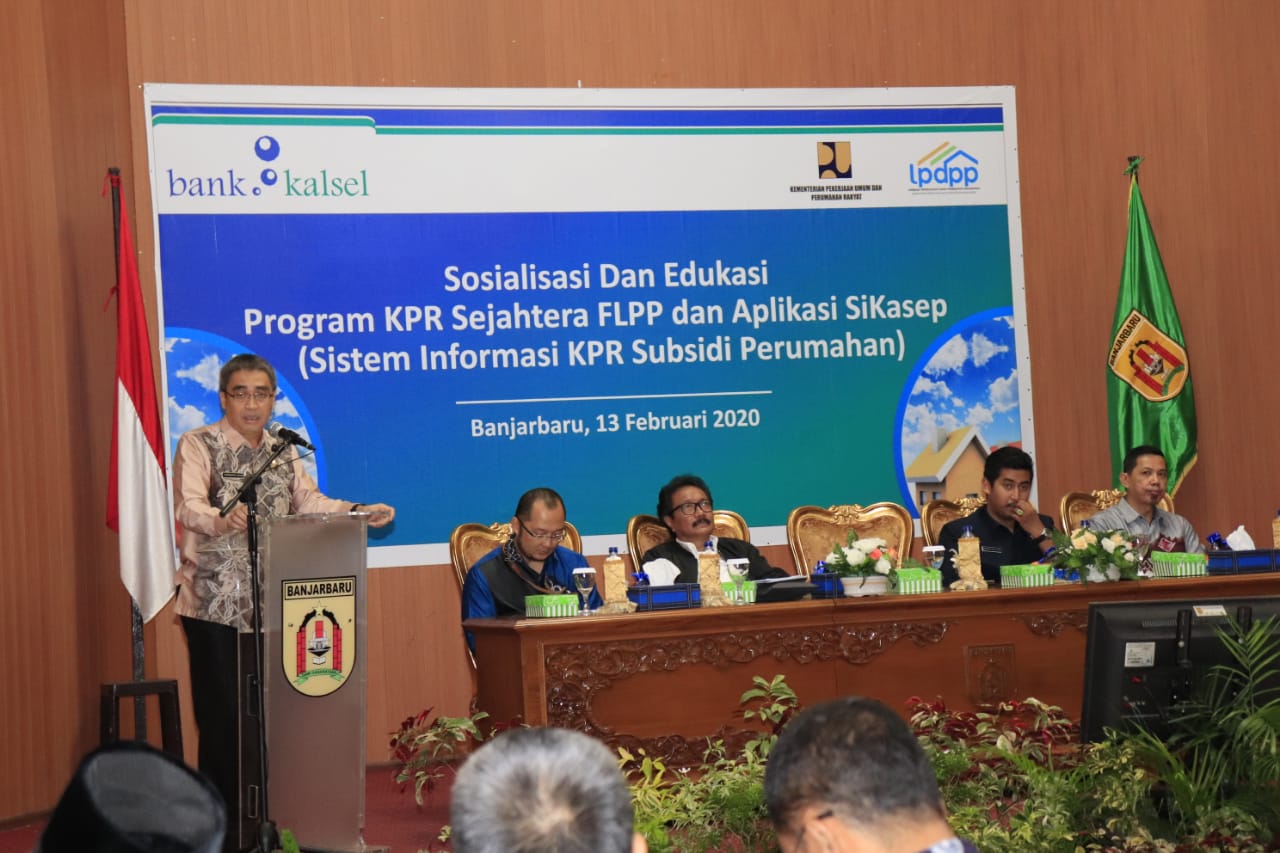 KANALKALIMANTAN.COM, BANJARBARU – Wakil Walikota Banjarbaru H Darmawan Jaya Setiawan membuka acara sosialisasi dan edukasi program Kredit Pemilikan Rumah (KPR) Sejahtera FLPP dan aplikasi Sikasep (Sistem Informasi KPR Subsidi Perumahan) yang dilaksanakan oleh Bank Kalsel di aula Gawi Sabaratan Pemerintah Kota Banjarbaru, Kamis (13/2/2020).