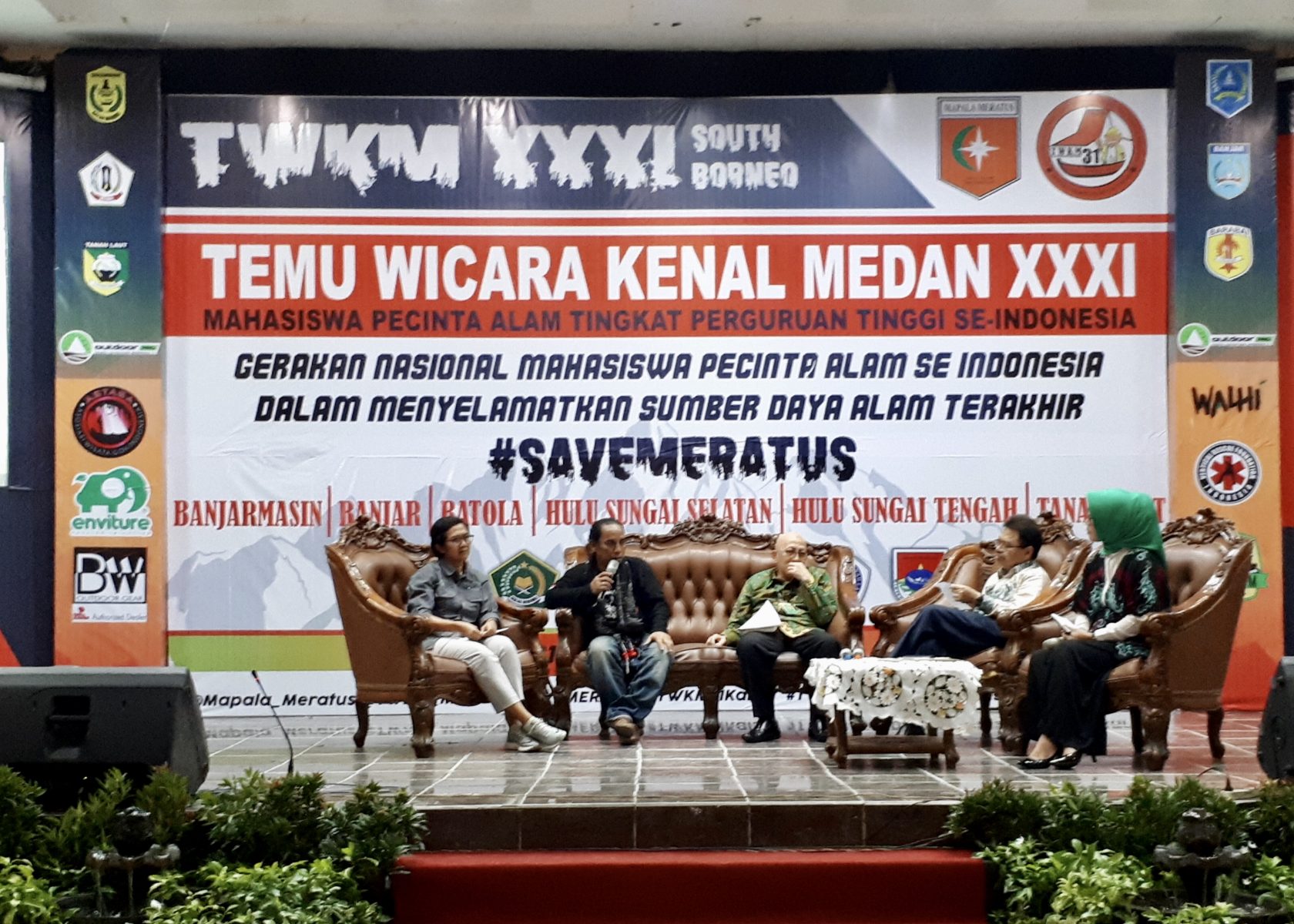 BANJARMASIN, Temu Wicara Kenal Medan XXXI Mahasiswa Pecinta Alam (Mapala) Perguruan Tinggi Se-Indonesia berlangsung di Auditorium UIN Antasari Banjarmasin. Kegiatan ini merupakan gerakan nasional Mapala se-Indonesia dalam menyelamatkan rimba terakhir pegunungan Meratus, Hulu Sungai Tengah (HST) Kalsel. Dalam kegiatan ini juga diadakan deklarasi Save Meratus dari pihak Walhi, KLHK, dan Mapala se-Indonesia.