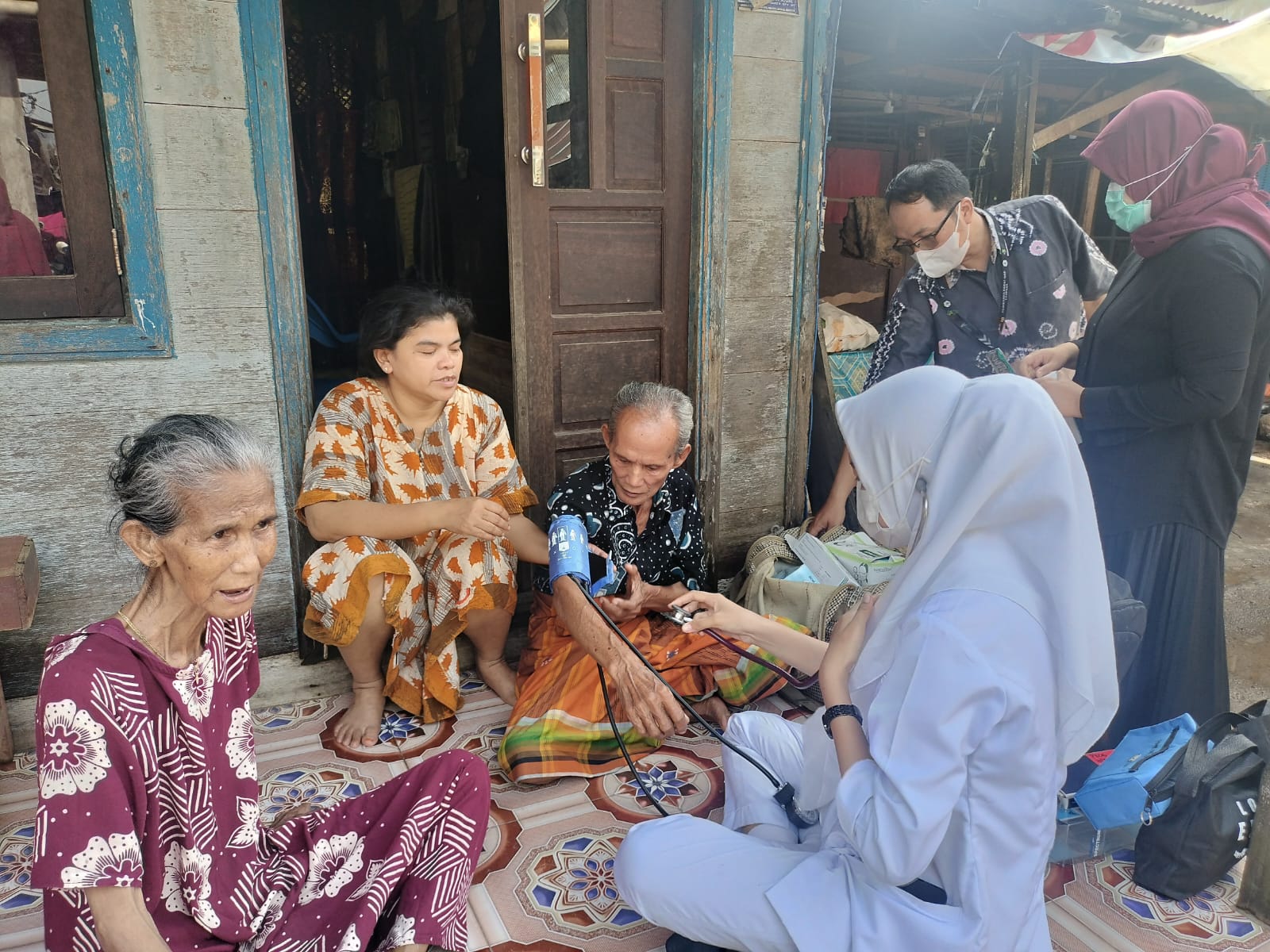 Petugas Dinas Kesehatan Banjarbaru melakukan pengecekan kondisi kesehatan warga terdampak banjir. Foto: ist