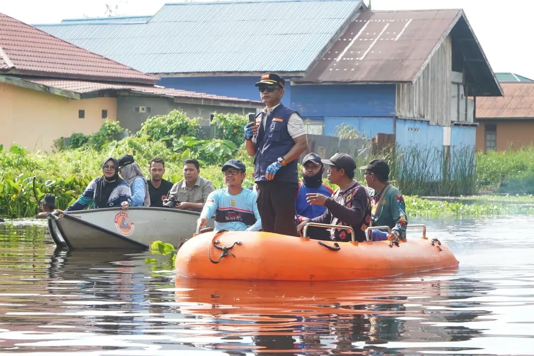 Wali Kota Banjarmasin, H Muhammad Yamin HR melakukan inspeksi aliran sungai di Kota Seribu Sungai. Foto: Prokom Banjarmasin