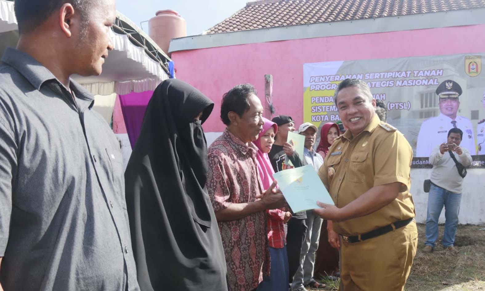 Ratusan warga sejak pagi sudah berkumpul di RTH Komplek Citra Raya Angkasa, samping kantor Kelurahan Syamsudin Noor untuk menghadiri penyerahan sertipikat PSTL.