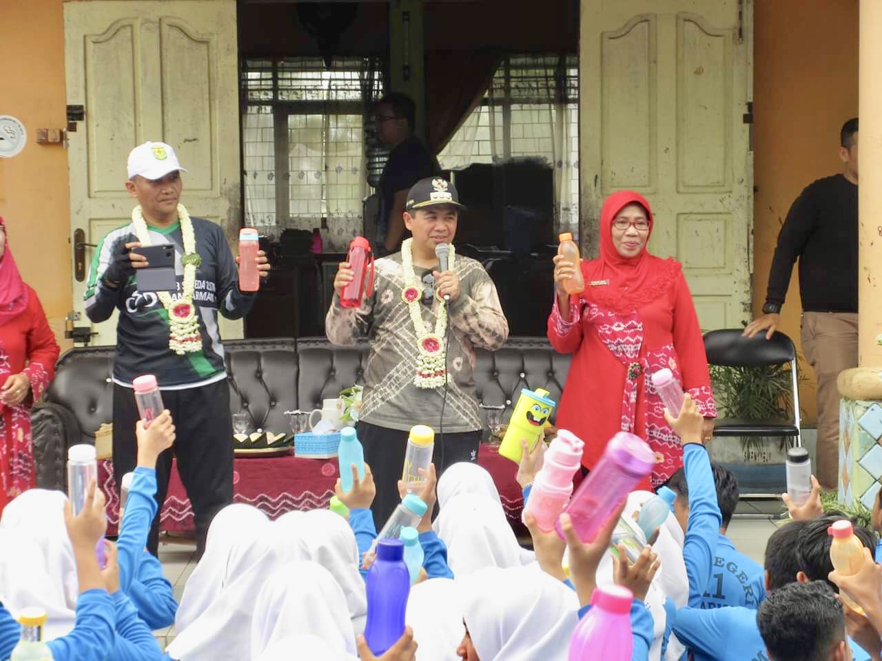 BANJARMASIN, Sosialisasi penggunaan botol air minum (tumbler) di sekolah dan perkantoran lingkup Pemko Banjarmasin terus dilakukan Walikota Ibnu Sina. Bersama Kepala Dinas Pendidikan Banjarmasin Totok Agus Daryanto dan Tim Gowes Kayuh Baimbai, mereka mengunjungi beberapa sekolah lingkup Pemko Banjarmasin, Jumat (22/2).