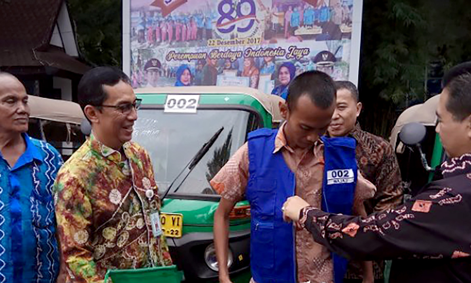 BANJARMASIN, Walikota Banjarmasin Ibnu Sina memperkenalkan 12 bajaj baru yang akan beroperasi di jalanan kota, Kamis (28/12). Secara simbolis, Walikota menyerahkan surat menyurat kendaraan, rompi, dan topi kepada sopir penerima kendaraan. Upaya ini, sebagai wujud peremajaan sarana transportasi armada bajaj yang sudah tua.