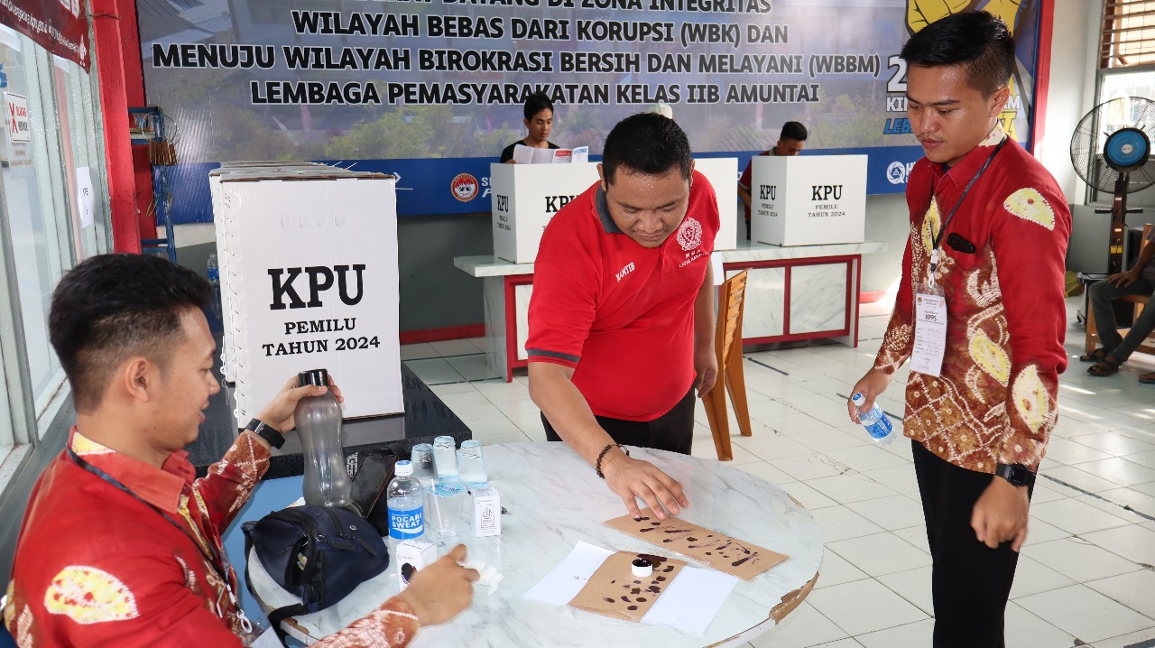 Proses pemungutan suara Pemilu 2024 di Lapas Kelas IIB Amuntai, Rabu (14/2/2024). Foto: lapasamuntai