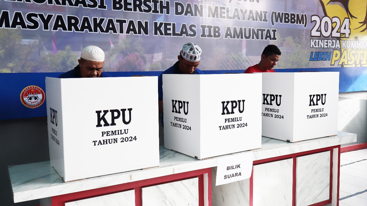 Proses pemungutan suara Pemilu 2024 di Lapas Kelas IIB Amuntai, Rabu (14/2/2024). Foto: lapasamuntai