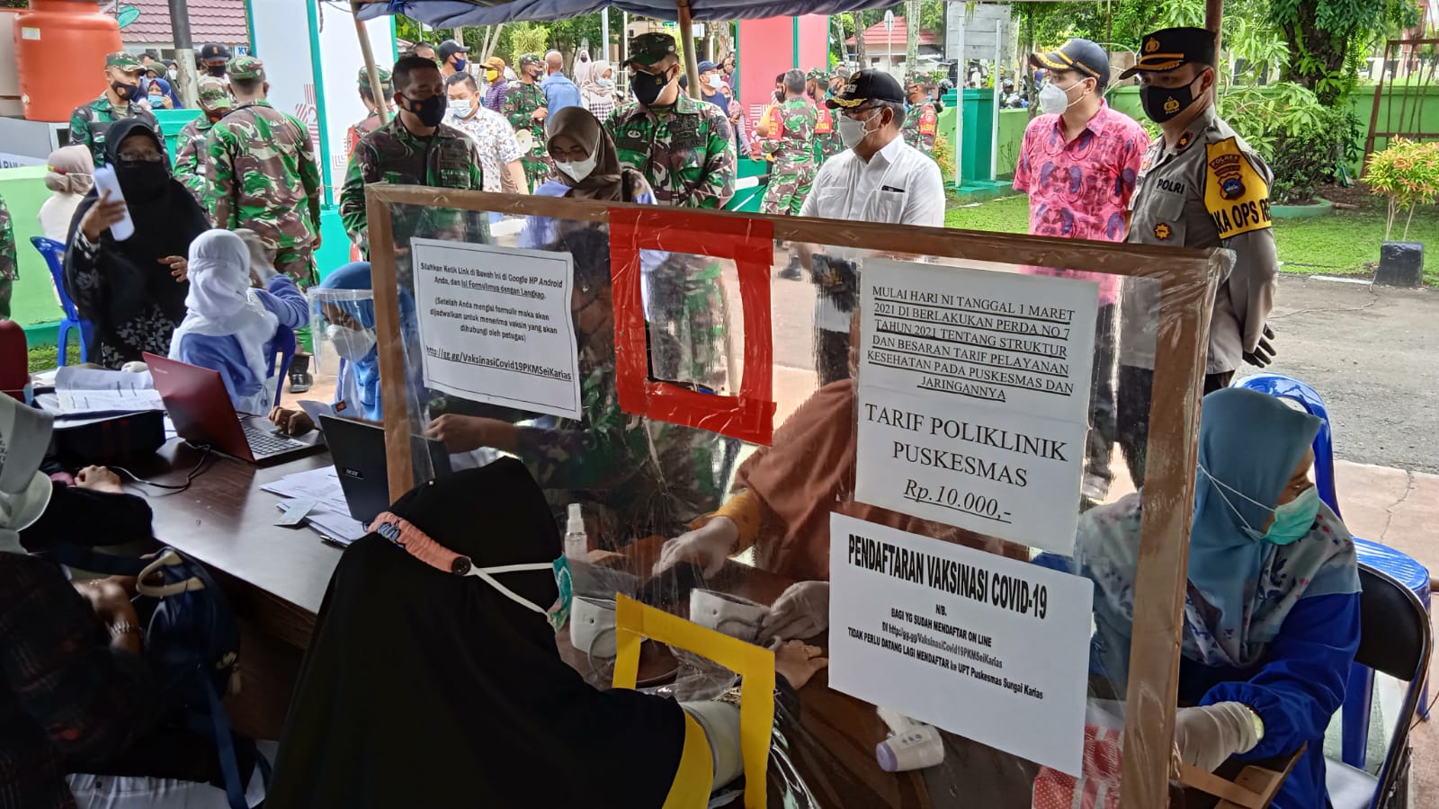 “Kami mendapat perintah dari Panglima TNI untuk melaksanakan kegiatan serbuan vaksinasi, serbuan vaksinasi yang kita laksanakan di wilayah Kodim 1001 ini mendapatkan vaksin dari TNI sebanyak 102 vial untuk seribu orang. Jadi lebih kurang kita targetkan seribu orang dalam kegiatan hari ini, mudah-mudahan berjalan dengan lancar,” kata Dandim 1001.