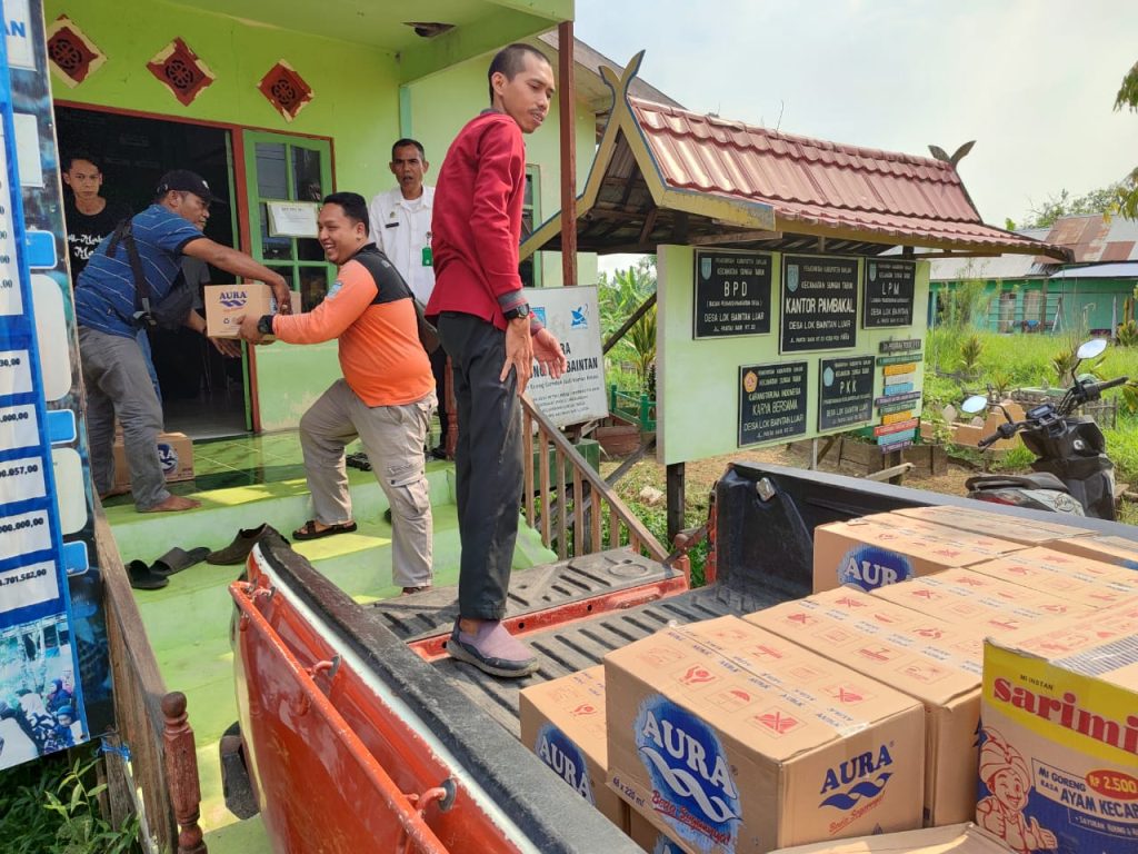 Badan Penanggulangan Bencana Daerah (BPBD) Kabupaten Banjar serahkan bantuan untuk Desa Lokbaintan Dalam dan Desa Lokbaintan Luar, Kecamatan Sungai Tabuk, Kabupaten Banjar.
