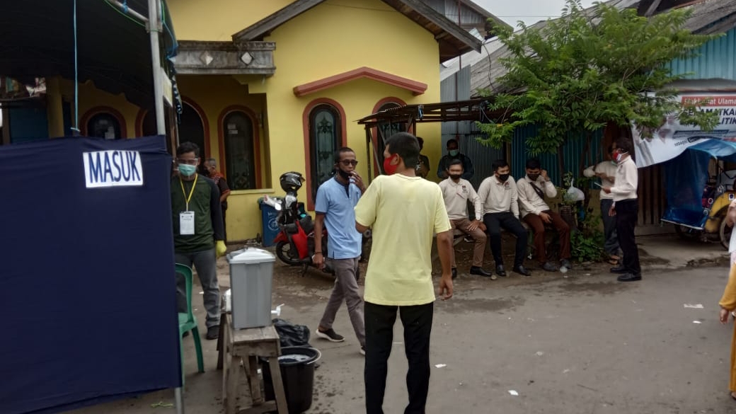 Dengan protokol kesehatan Covid-19, para petugas TPS berjaga di lokasi pemungutan suara. Sebelum masyarakat memasuki TPS, mereka diwajibkan mencuci tangan, serta di cek suhu tubuh sebelum masuk ke dalam TPS. Saat berada di dalam TPS, pemilih menempati tempat duduk antrean dengan diberi jarak sekitar 1 meter.