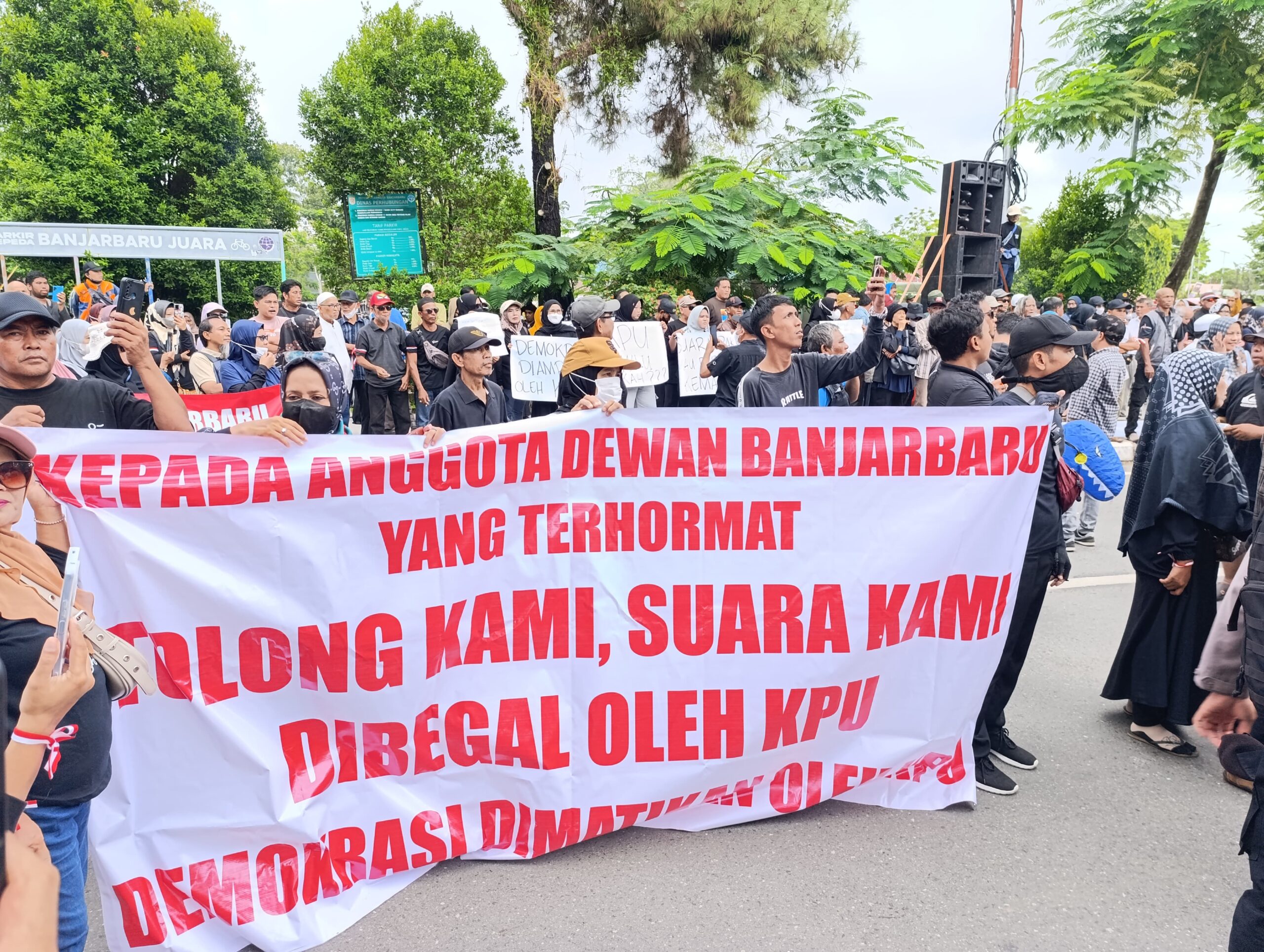 KANALKALIMANTAN.COM, BANJARBARU – Dalam waktu tiga hari wakil rakyat dan KPU Banjarbaru diminta mengambil keputusan terkait tuntutan yang dilontarkan warga Banjarbaru pada aksi unjuk rasa di gedung DPRD Kota Banjarbaru, Senin (2/12/2024) siang.