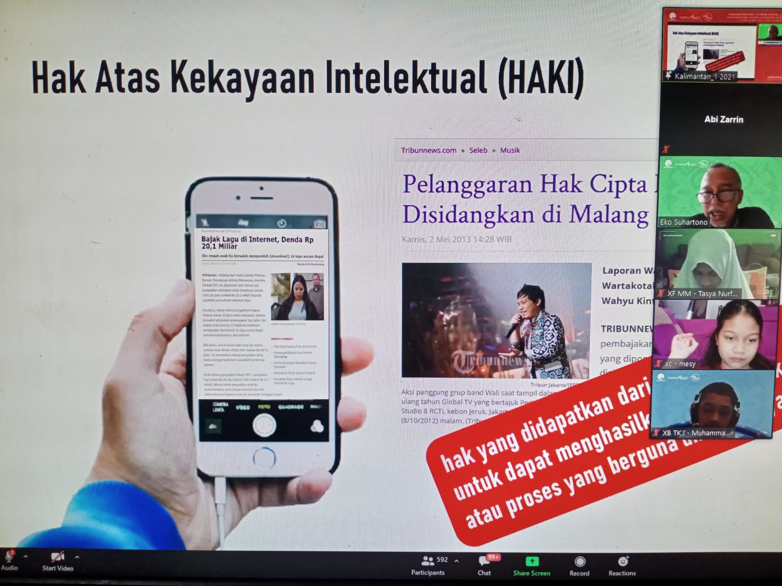 “Kalau memiliki sebuah karya segera didaftarkan ke HAKI,” kata Eko Suhartono. Fungsi HAKI penting untuk melindungi hasil karya.