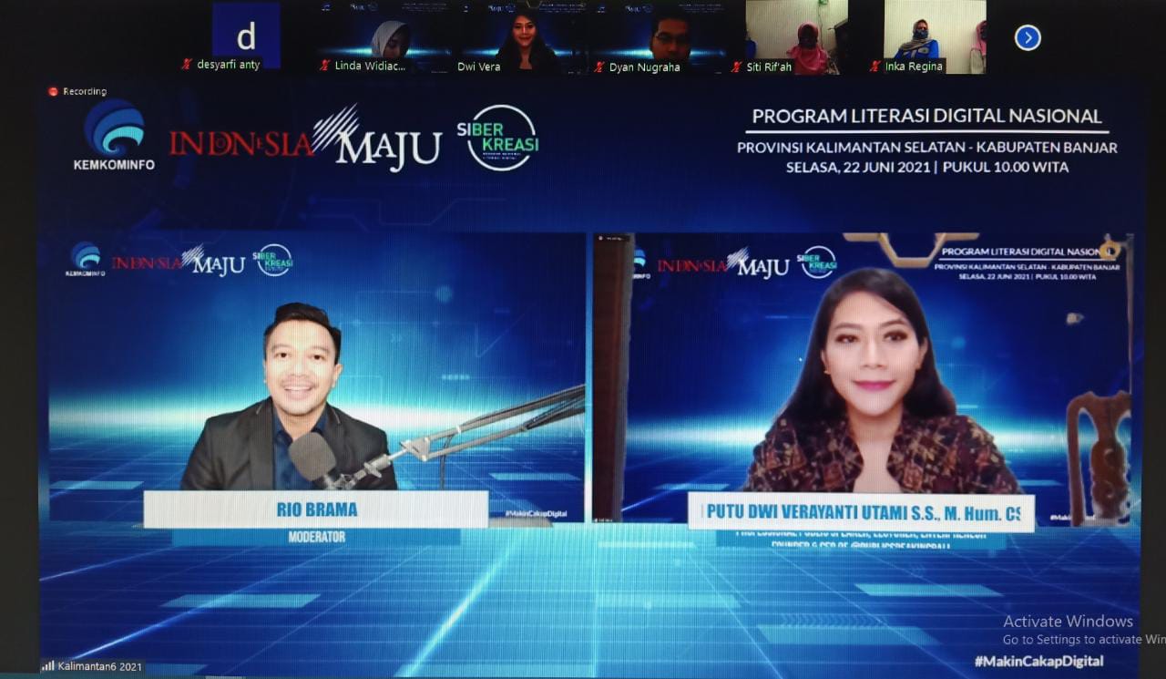 Kegiatan yang dihadiri secara online ini merupakan bagian dari program literasi digital nasional : Indonesia Makin Cakap Digital yang telah dicanangkan oleh Presiden RI, Joko Widodo pada 20 Mei 2021 lalu.