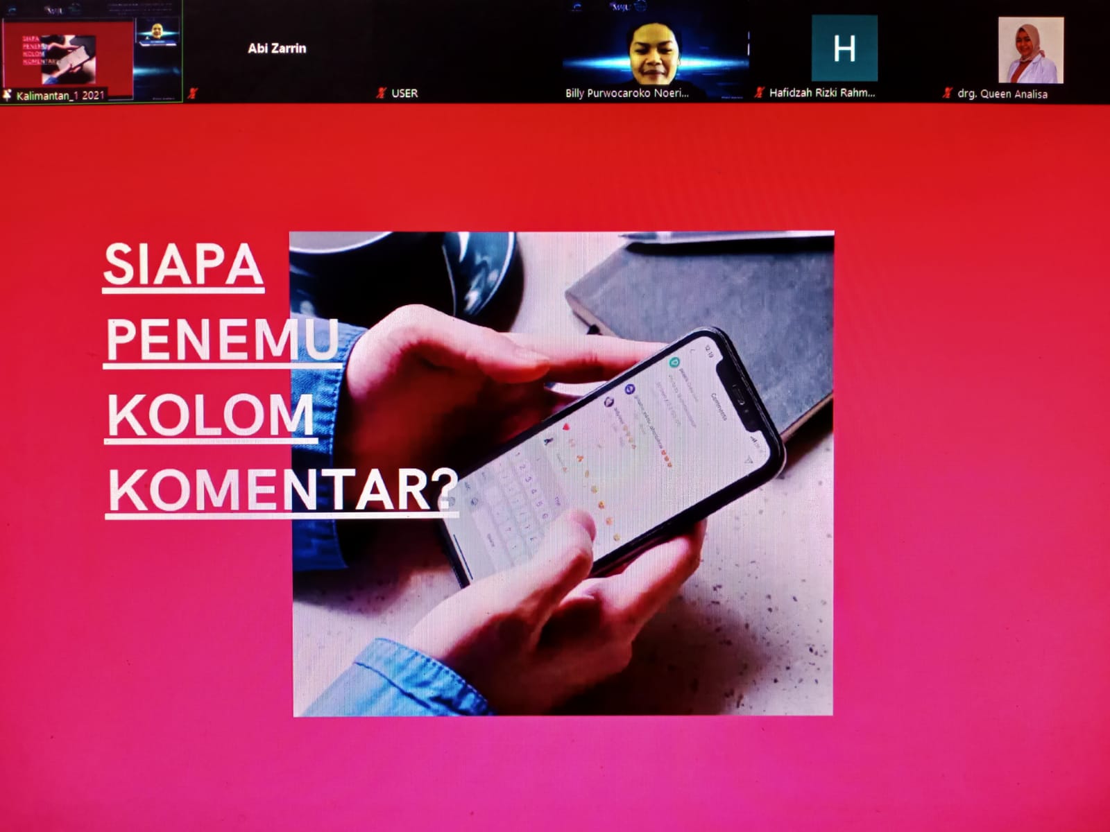 Sifat kolom komentar itu aksesibel, aman bebas terbatas. “Kita harus tahu kontek dan kondisi,” kata Billy. Pola kolom komenter di media sosial tidak seperti manusia, bisa disalahgunakan.
