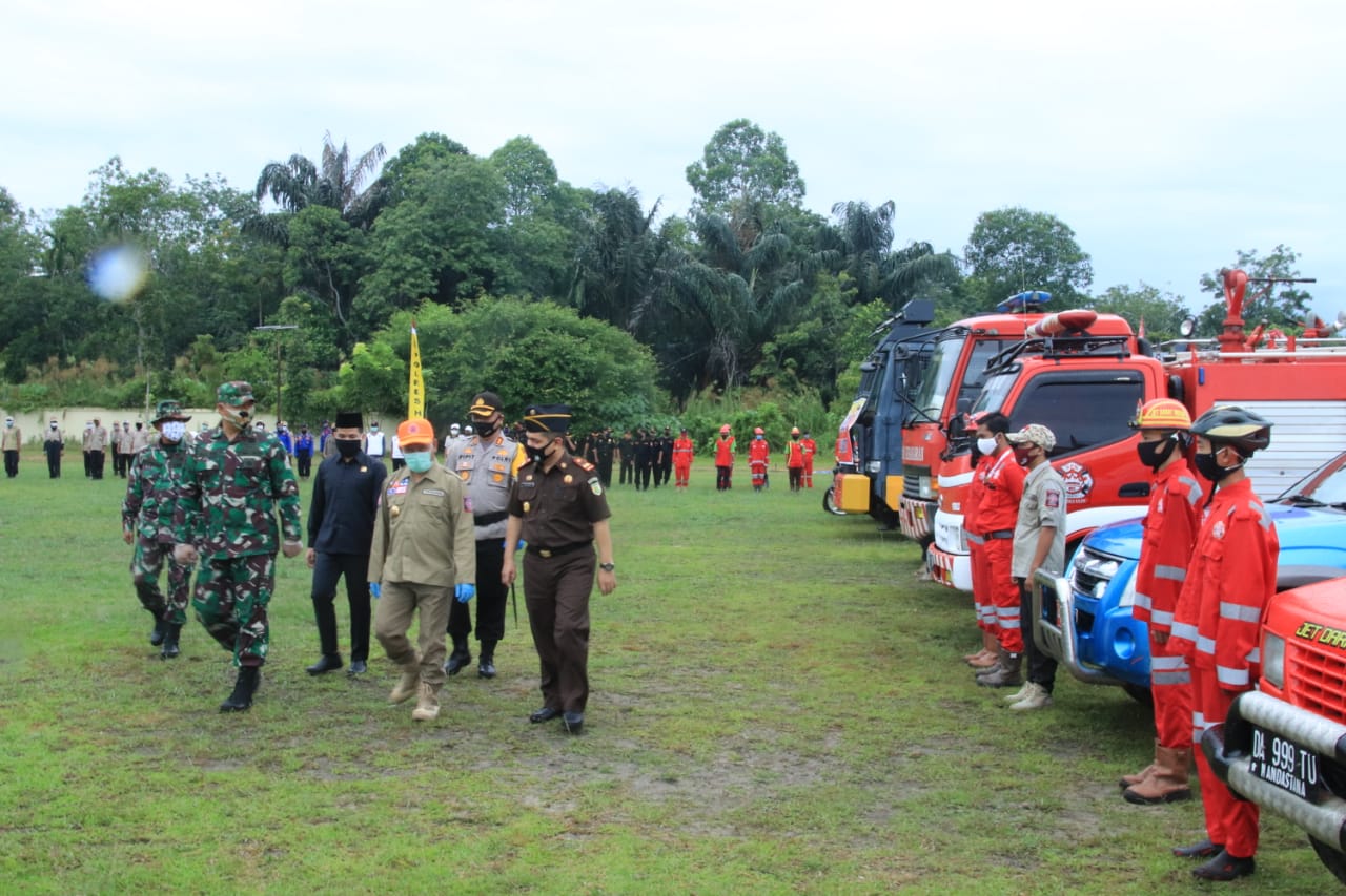 Satgas penanggulangan kebakaran hutan dan lahan (Karhutla) apel gelar pasukan di lapangan Stadion Karias, Jumat (19/6/2020). foto: dew