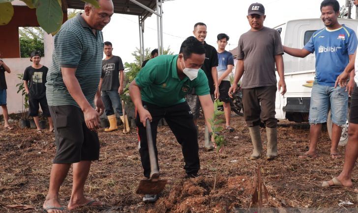 Legislator dari PDIP ini mengikuti aksi gotong royong lingkungan sekaligus penanaman bibit pohon di fasilitas umum perumahan Mahkota Trikora, Kelurahan Guntung Manggis.