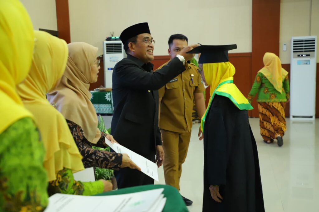 Bupati HSU H Sahrujani menyampaikan ucapan selamat kepada para peserta wisuda sembari mengapresiasi program dari inklusi Aisyiyah ini.