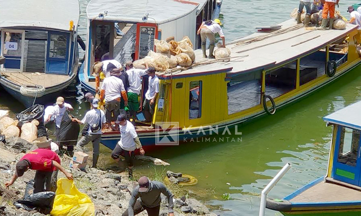 ARANIO, Sekitar 7 ton sampah berhasil terkumpul dalam kegiatan ‘Perang Sampah’ yang diikuti sekitar 300 orang peserta yang terbagi dalam 10 kapal di waduk Riam Kanan, Sabtu (14/4).