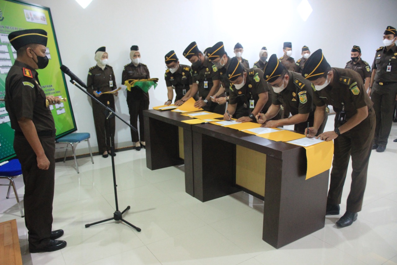 Disamping melakukan penandatanganan pakta integritas, dalam kesempatan tersebut Kepala Kejari HSU juga mengukuhkan 3 orang sebagai agen perubahan yang bertugas untuk menciptakan keinginan perubahan di dalam masyarakat, klien lainnya, serta menjalin dan membina hubungan dalam rangka melakukan perubahan (Kanalkalimantan.com/dew)