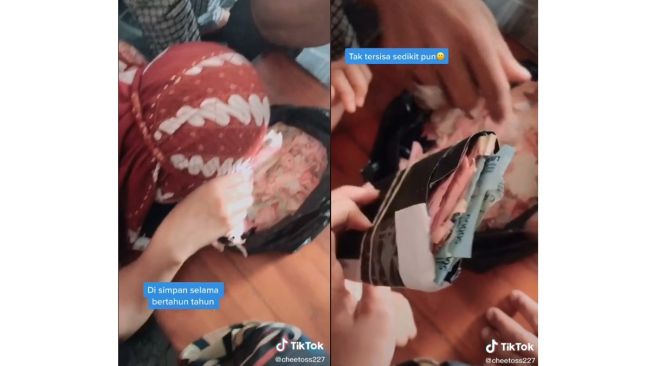 Seperti unggahan video di akun TikTok @cheetoss227 yang memperlihatkan sejumlah uang hasil tabungannya selama tiga tahun lebih di bawah kasur.
