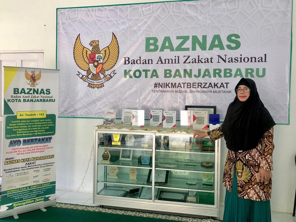 Bagi masyarakat yang ingin membayar zakat fitrah bisa melalui barcode Qris di kantor Baznas Kota Banjarbaru. Foto : wanda